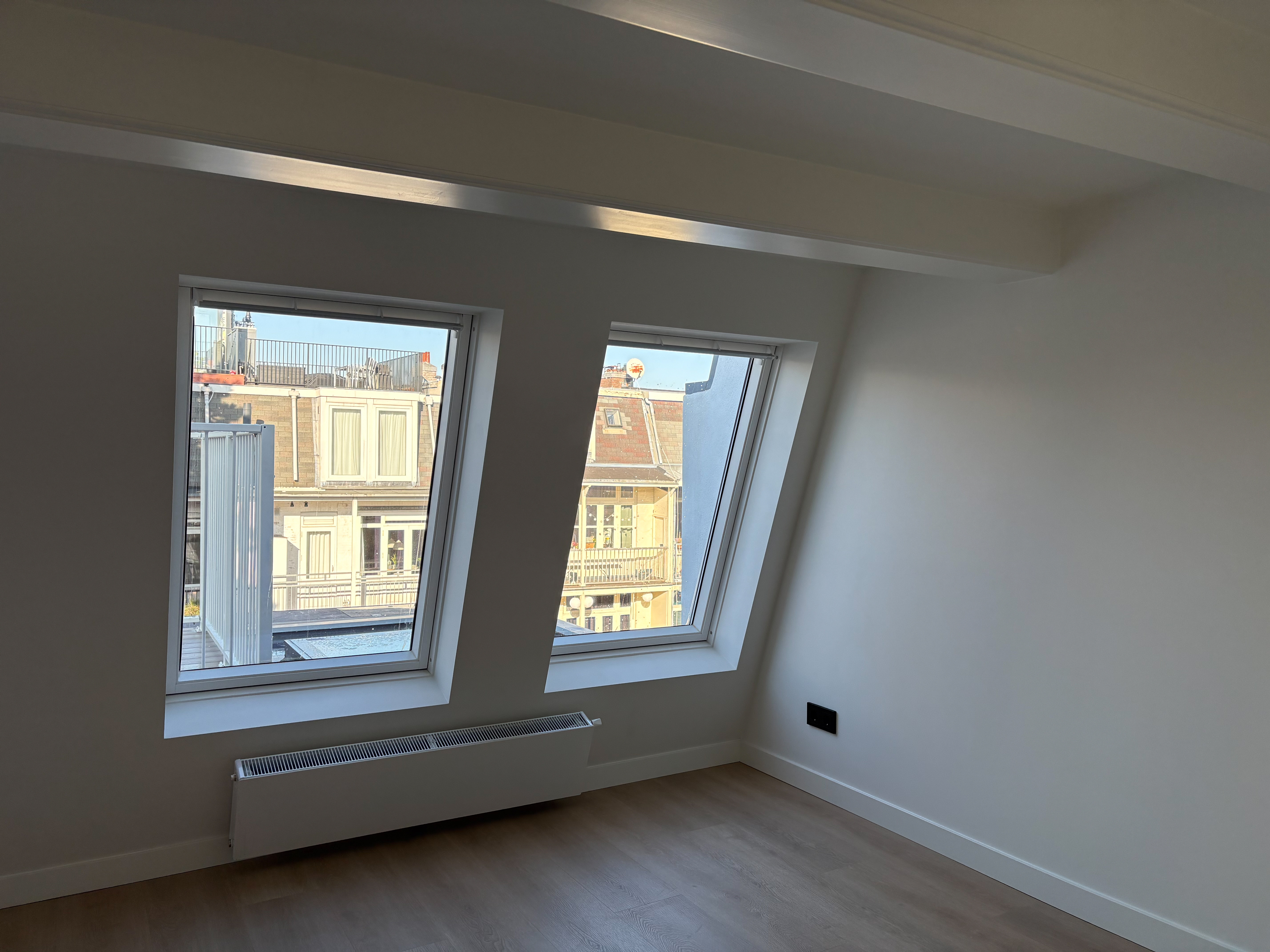 The total living area is approximately 85 square meters, spread over two floors. On the third floor you’ll find an open kitchen equipped with all the necessary built-in appliances. At the back of this floor is a balcony.