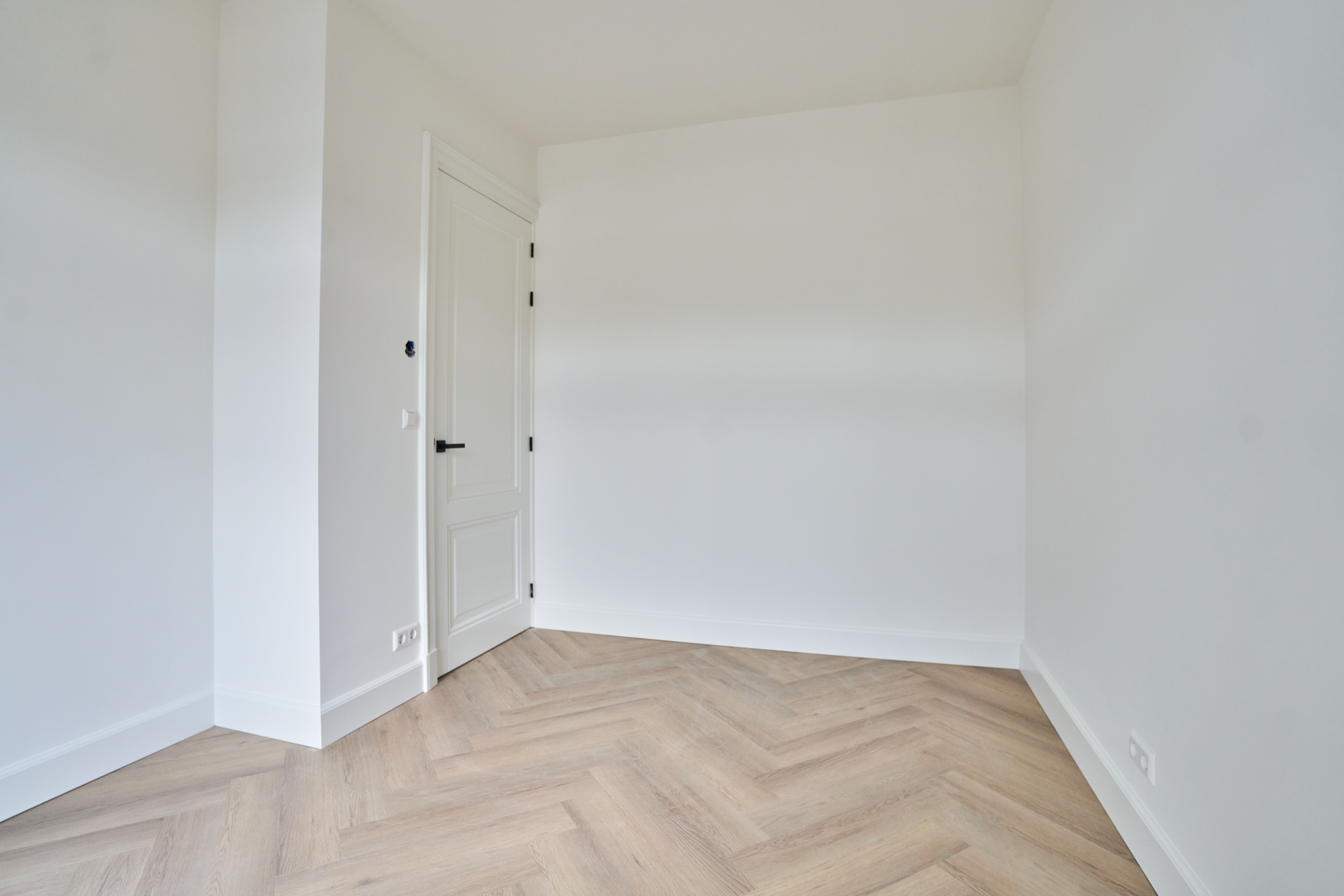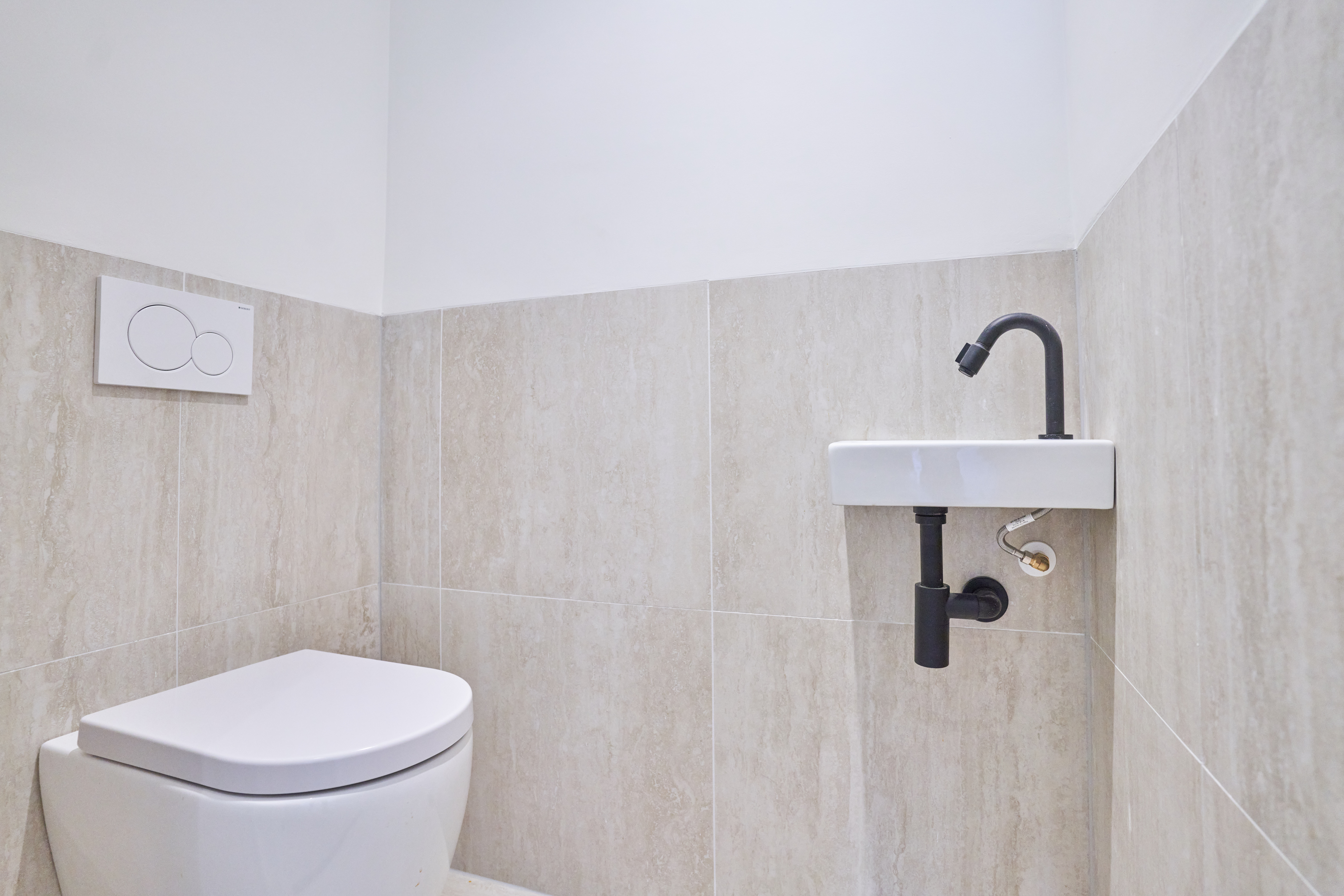 De luxe badkamer is voorzien van inbouwspots, een dubbele wastafel met meubel, een inloopregendouche en bad. Het toilet met fonteintje bevindt zich in een aparte ruimte naast de badkamer en ook de aansluitingen voor de witgoedopstelling zijn handig weggewerkt in een aparte wasruimte. De woning is piekfijn afgewerkt met een PVC-laminaatvloer met vloerverwarming.